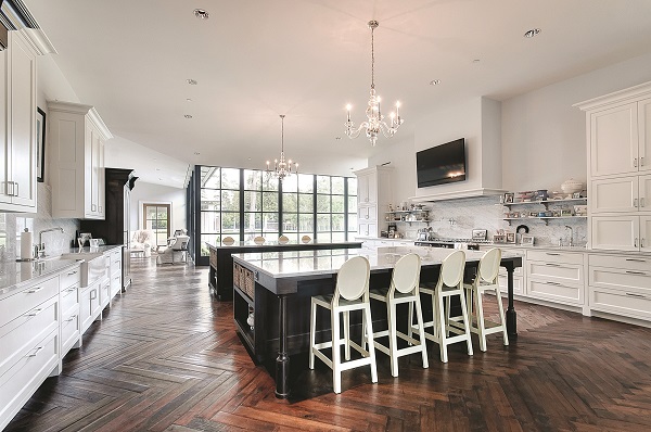 Fije encendido sobre dos acres en el pueblo penoso del punto de Houston, uno de los enclaves más exclusivos de Tejas, este señorío moderno fue construido para ser un domicilio familiar sobre todo. Imaginado por los dueños actuales con sus cinco niños en mente, el estado neo-tradicional mantiene un equilibrio pensativo entre viejo y nuevo, abierto y lo insinúa, minimalista y magnífico. Hay cuartos formales para las alcobas de entretenimiento y privadas a escaparse y el reflet, pero las características de definición son los tactos personales del hogar, tales como las ventanas de travesaño sobre las entradas del dormitorio, diseñaron así que los padres sabrían siempre si sus niños estaban despiertos en la noche.