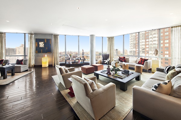 Las opiniónes son todas que abarcan - 360 grados de horizonte de Manhattan, de Central Park y del río de Hudson mostrado a través de ventanas del piso-a-techo a través del apartamento. La tecnología es avanzada, con sistemas de la automatización casera de Crestron y de Lutron y un cuarto que defiende ocultado, y el diseño es impecable. Los puntos culminantes incluyen una cocina de Boffi, una libre-flotación, chimenea four-sided del bronce y del vidrio y las puertas deslizantes electrónicas, una cuyo fue traído encima de 33 historias al hogar vía la grúa, que llevan a masivo, las terrazas ajardinadas e irrigadas de la aduana con el espacio de cena y lounging al aire libre expansivo. Séalo suficiente para decir, las comodidades son más que amplio, sumando ocho dormitorios, nueve y cuartos de baño de una mitad, así como una segunda cocina llena situada en los cuartos del personal. Y, por supuesto, el edificio es lleno-servicio con 24/7 doorman, el concierge, el encargado residente live-in y 25 miembros de personas a tiempo completo.