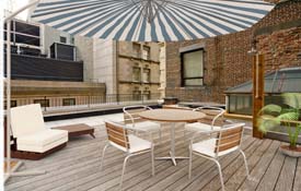Crossing the pond for something completely different, we found this boutique condo prewar duplex in Manhattan’s trendy Financial District. Ticking off every box on that must-have list — high ceilings, hardwood floors and in-unit laundry this home has something that sets it apart from so many others, a sprawling rooftop deck.